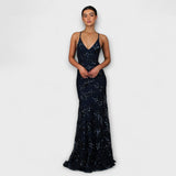 Zayla - Rückenfreies Maxikleid mit Pailletten-V-Ausschnitt